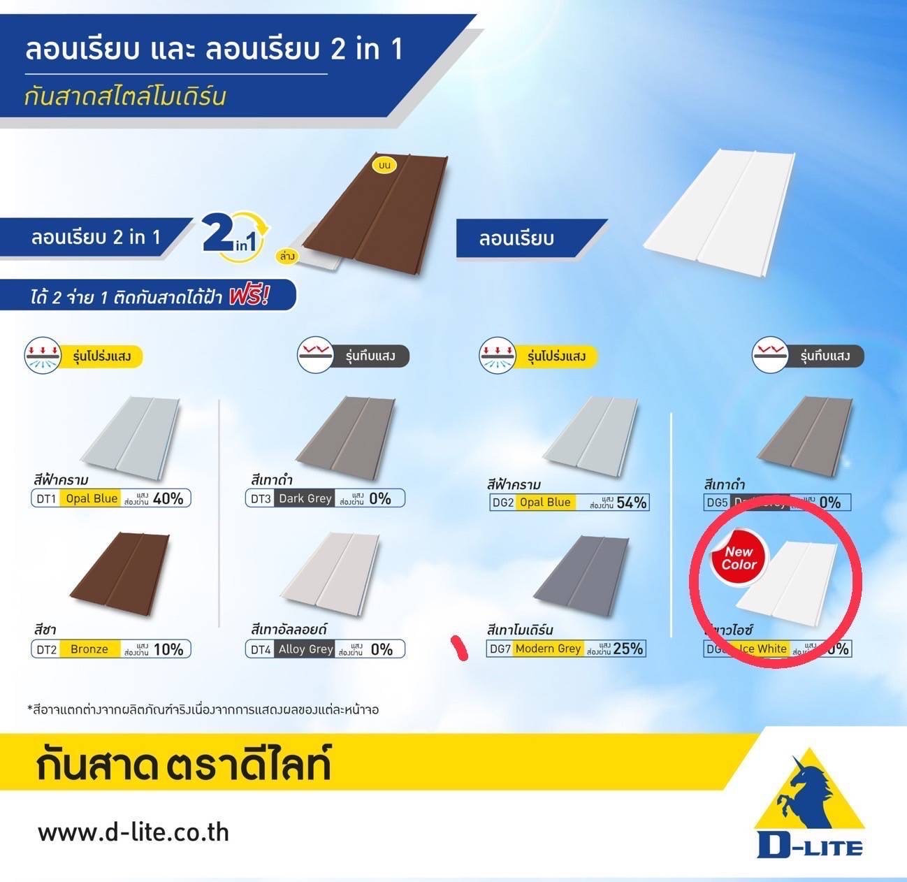 หมวดหมู่: กันสาดดีไลท์ ลอนเรียบ 2 in 1